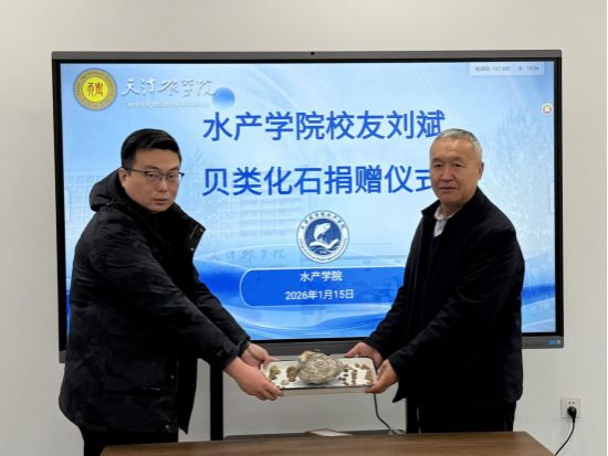 捐赠仪式上,刘斌校友向母校捐赠了珍贵的贝壳化石,以此表达对母校的感恩之情,并助力水产学科的教学与科研发展。贝壳化石作为海洋生物演化的重要见证,不仅具有极高的科研价值,更是连接海洋生态与人类文明的重要纽带。这些化石如同 "立体日记",记录了古海洋生态的细节,为研究古海洋环境和生物演化提供了关键证据。